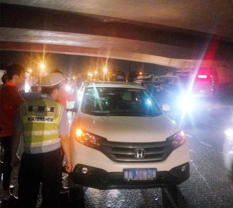 郑州高架桥掉落水泥块砸中汽车 女司机当场吓晕