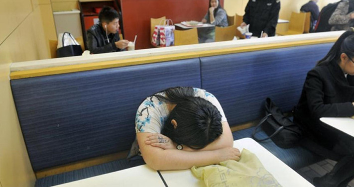 在等待大约30分钟后,在沙发上熟睡的年轻女孩揉揉眼,醒了。她说,她姓张,是一名“90”后,几个月前,她和老公从新乡长垣来郑州打工,她的工资大约五六千元。后来,因为房东涨房租他们住不起了,就搬到了这里的网吧住,至今大约有半个月时间。